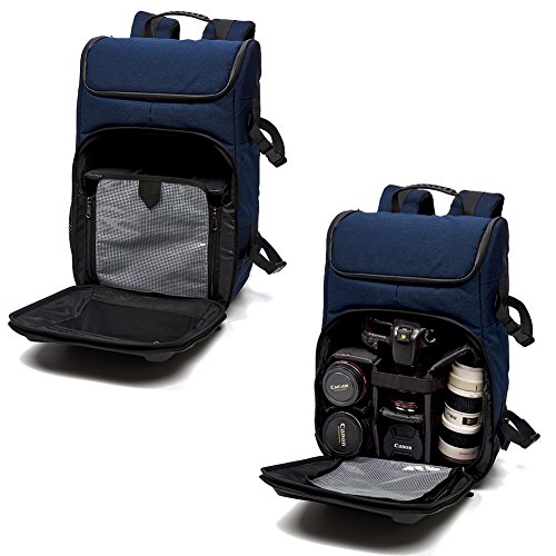Zaino Fotografico, Evecase Shell DSLR Camera Zaino Professionale per Fotocamera Digitale Reflex e Laptop fino a 15.6 Pollici con Coperta Parapioggia e Borsa Interna - Blu/Nero