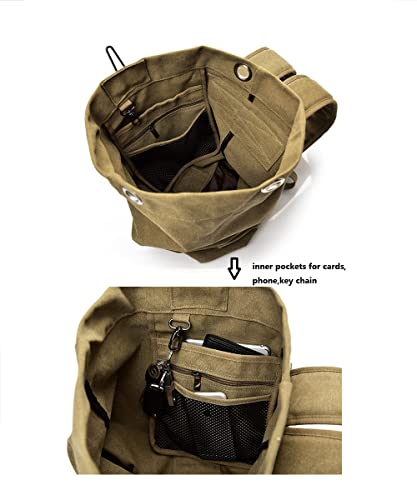 Zaino militare tattico della tela della cinghia del doppio del carico superiore della borsa da viaggio di grande capacità della borsa da arrampicata, marrone chiaro, Large, Zaini da viaggio