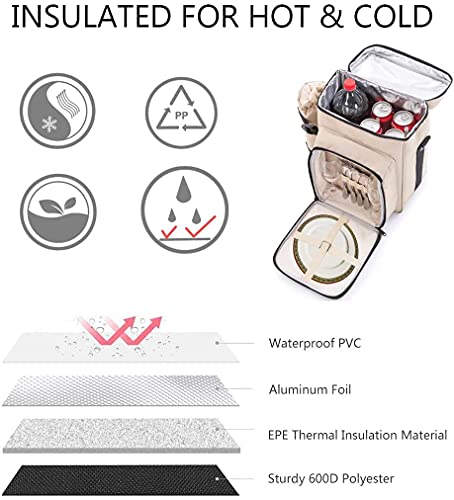 Materiali di qualità - L'esterno della borsa da picnic è realizzato in tessuto impermeabile 600D Oxford, elevata durabilità e facilità di pulizia.