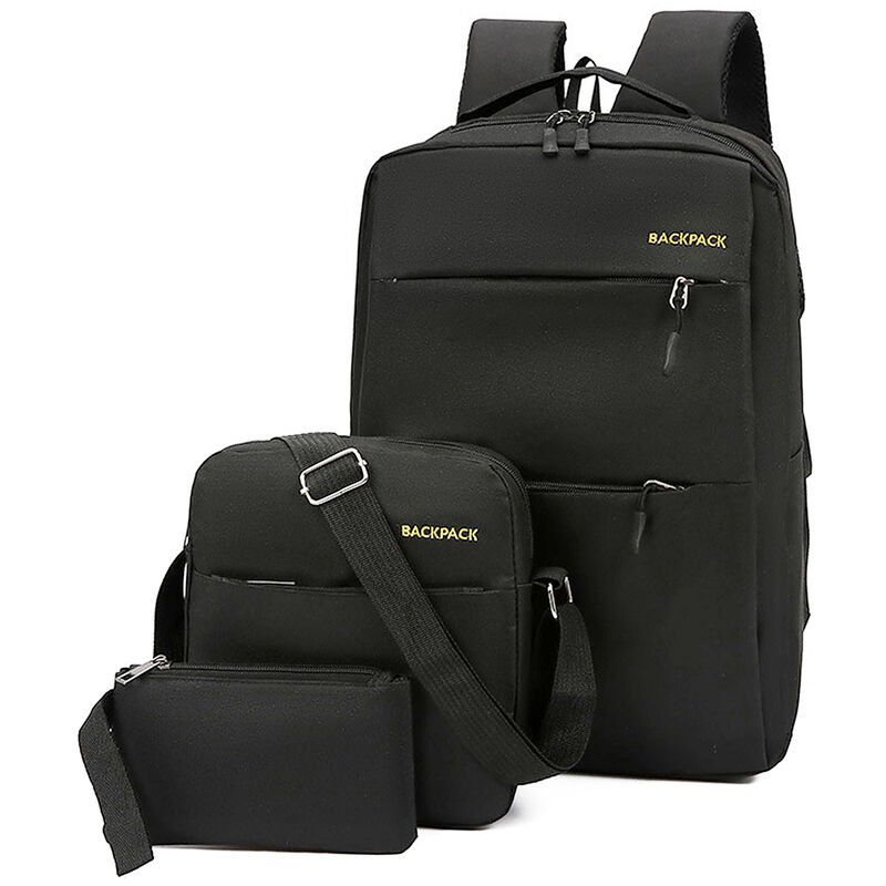 Questo zaino per laptop è realizzato in tessuto oxford resistente all'acqua e agli strappi. Molteplici tasche indipendenti e comoda tracolla imbottita allargata e porta di ricarica USB integrata, adatta per l'uso quotidiano a scuola, college, affari e viaggi, adatta a donne, uomini e studenti. Caratteristiche: Vieni con uno zaino, una borsetta e una borsa a tracolla. Realizzato in tessuto oxford idrorepellente, alta resistenza allo strappo e alta resistenza all'abrasione. Il design a tasche multiple dello zaino soddisfa le tue esigenze quotidiane, come libri, laptop, ombrelli, ecc. Interfaccia USB con design del cavo integrato, grande praticità per caricare i tuoi dispositivi elettronici collegando il tuo power bank. Lo scomparto per laptop può contenere laptop fino a 16 pollici. Lo schienale ergonomico e gli spallacci regolabili offrono un comfort duraturo. La borsa a tracolla centrale può contenere i compiti o viaggiare, fare escursioni, fare acquisti, visitare il tuo compagno di