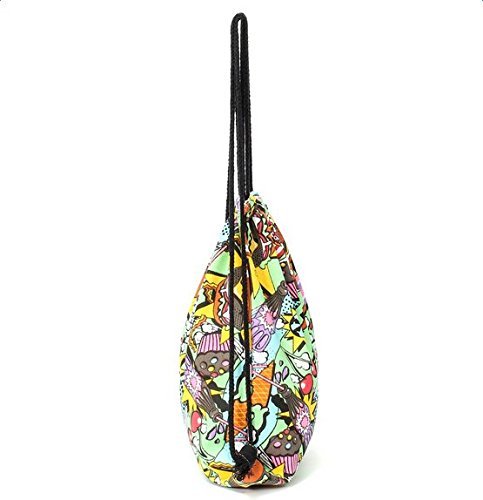 Sacca colorata con stampe, colori assortiti, articolo amato dagli adolescenti.