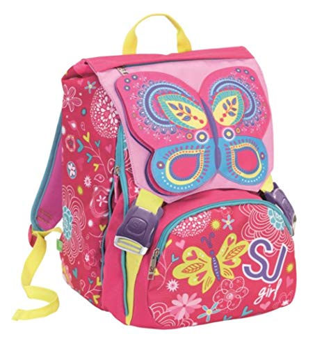 Zaino schoolpack seven sdoppiabile big sj gang girl con pattine sfogliabili + astuccio 3 zip rosa farfalla