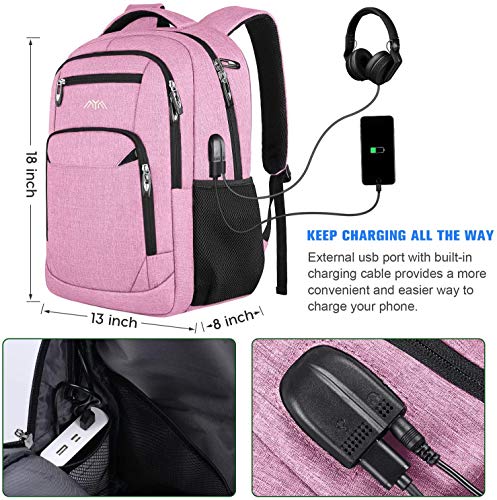 Zaino per scuola e laptop, per ragazzi, ragazze, adolescenti, uomini e donne, da giorno e per lavoro, zaino con USB, Colore: rosa. (Rosa) - YAMTION-C25