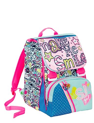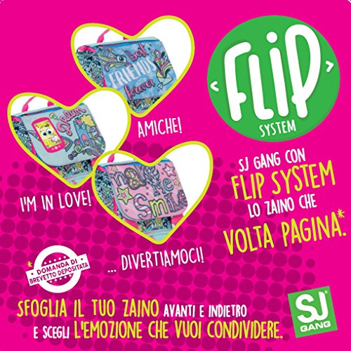 Zaino scuola sdoppiabile SJ GANG - GIRL - Azzurro Rosa - FLIP SYSTEM - 28 LT elementari e medie 3 pattine sfogliabili