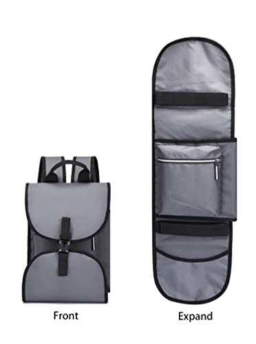 Zaino da skateboard impermeabile borsa per uomo con 2 spallacci regolabili cinghie pieghevoli custodia per skateboard portatile universale Street Trend Skate borse per il trasporto da viaggio grigio