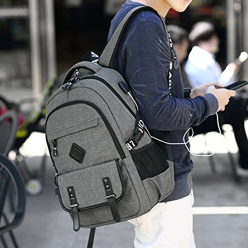 Zaino degli studenti universitari con porta USB di ricarica zaino del computer portatile zaino da viaggio borsa da viaggio per gli uomini le donne si adatta sotto il computer portatile da 15.6 pollici (Grigio)