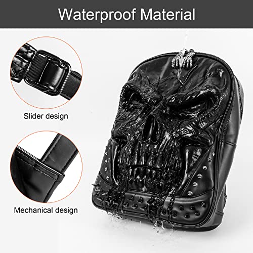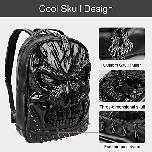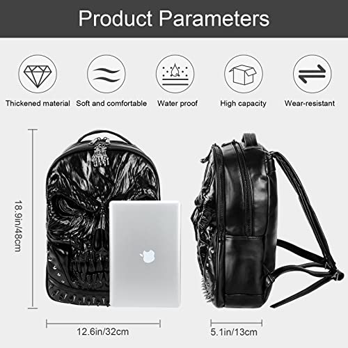 Zaino teschio in pelle PU 3D - Zaini Steam Punk Rivetto Borsa da viaggio Borsa da scuola superiore Borsa da scuola Borsa da scuola Borsa per computer Zaino per laptop per adolescenti Uomini e donne
