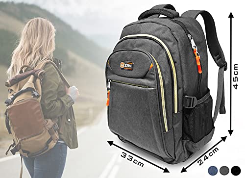IBK Zaino da viaggio per PC Computer Portatile Laptop Notebook, tessuto impermeabile, 15.6 Pollici, con Caricatore USB, Lavoro Uomo Donna per Scuola, Jeans Grigio Nero (Nero)