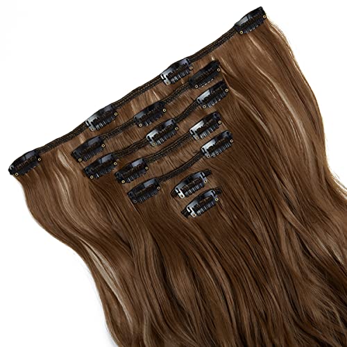 ZAIQUN Extension per capelli con clip, 7 pezzi, 16 clip, 64 cm, ondulati, ricci, sintetici, extension per capelli rossi, con clip a doppia trama