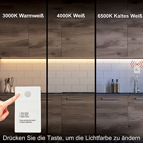 ZAIYW Striscia Luminosa con Sensore di Movimento a Batteria, Striscia Luminosa 2M 60 LED con 3000-6500K Regolabile, Autoadesiva, Tagliabile per Scale, Guardaroba, Cucina