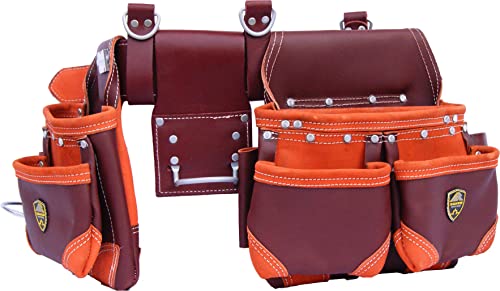 Zakco PRO-20 Genuine Grain Leather Professional Carpenters Tool Belt, Construction Tool Rig, Leather Tool Belt & Pouches, Framer's Tool Rig, Roofer's, Drywaller's Tool Belt (MAROON)
