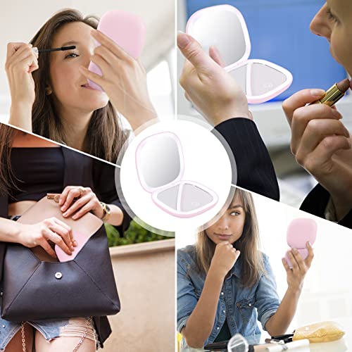 ZAKVOP LED Specchietto da Borsetta, Mini Specchio Ingranditore per Trucco 10x, Ricaricabile Specchio da Viaggio con Luce con 3 Modalità Colore, Specchio Pieghevole Luce per Trucco Specchietto Borsa