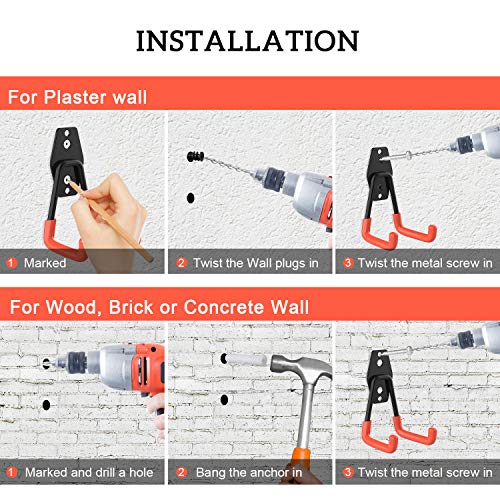 Qualità premium: i ganci da garage sono realizzati in ferro massiccio resistente e possono supportare un uso prolungato. Il rivestimento in PVC lo rende antiscivolo, resistente alla corrosione e antigraffio. Se installato correttamente, il piccolo gancio a forma di J potrebbe contenere fino a 34 kg/muro di mattoni.