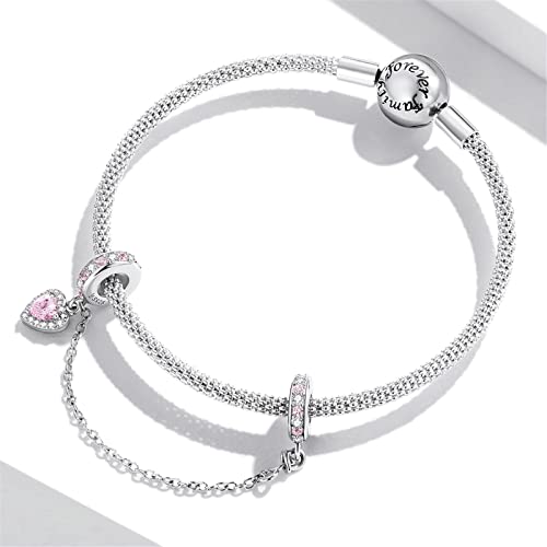 ZaliOan Charm per Bracciale Pandora Originali,Ciondoli in Argento 925 Catene di Sicurezza Compatibile con Braccialetto Pandora per Donna-Amore Catena di Sicurezza