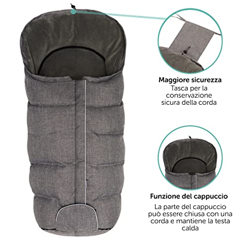 Zamboo sacco passeggino universale, coprigambe passeggino universale imbracature a 3 e 5 punti, in piuma d' anatra, con cappuccio e tasca - grigio