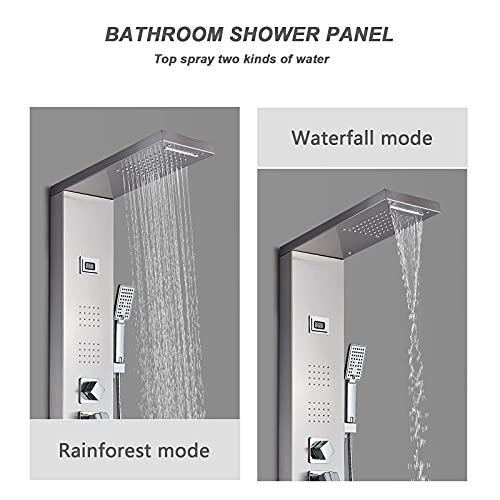 Zamery Colonna Doccia Pannello Doccia con Display LCD e Doccetta a 3 funzioni,Idromassaggio e Doccia Cascata Set Doccia Multifunzionale in Acciaio Inossidabile, Argento Spazzolato