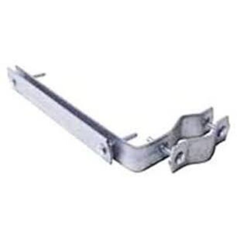 Zanca da balcone per pali antenna con diametro da 25 a 60mm: in acciaio zincato con profilo 30x3mm. Corredata di bulloni M6. marchio: Nuova Video Suono.