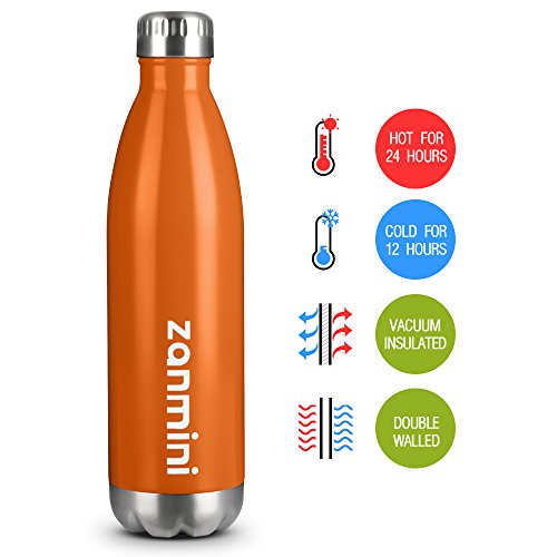 Zanmini Cola Vuoto Isolato Bottiglia d' Acqua, a Doppia Parete in Acciaio Inox - Bottiglia con 24 Ore di Caldo e 12 - 500 ml, 750 ml per Escursionismo e Campeggio (Arancione 750ml)