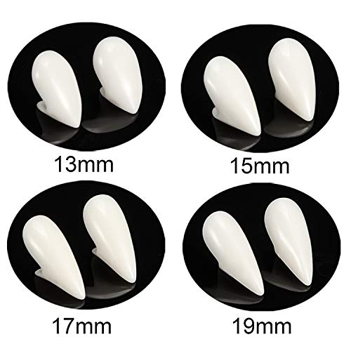 Dimensioni opzionali: ci sono 4 misure di protesi da vampiro, tra cui 0,51 pollici, 0,59 pollici, 0,67 pollici, 0,75 pollici, che soddisfano le tue diverse esigenze di cosplay;
