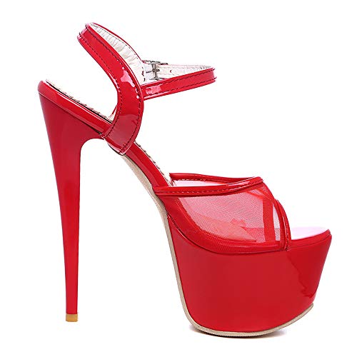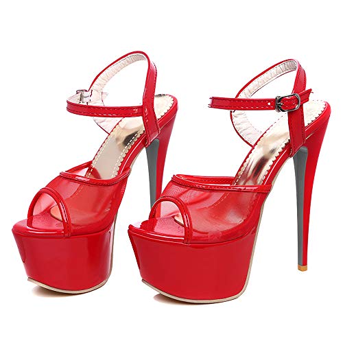 Zanpa Donne Moda Stiletto High Heels Sandali Aprire Il Piede Partito Scarpe Cinturino alla Caviglia Piattaforma Scarpe Estive Red Dimensione 46