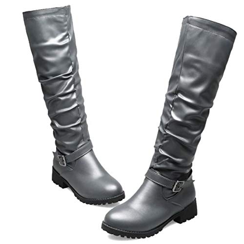 Zanpa Donne Moda Knee High Stivali Heels Western Stivali Mid Top Slouch Stivali Grey Dimensione 45