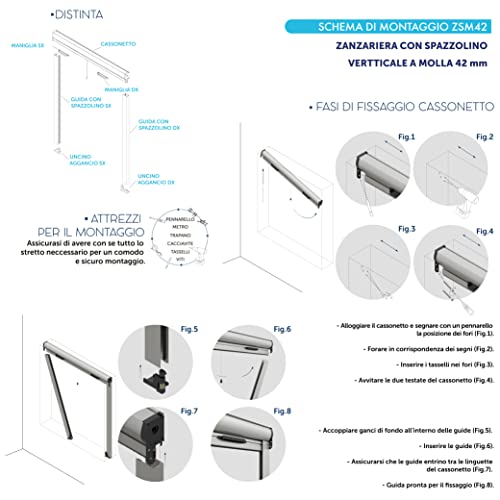 Zanzanet Zanzariera Verticale per finestre su Misura 42 mm cassonetto Sottile Personalizzabile a Rullo con Molla Telaio con Profilo Robusto e Resistente in Alluminio Made in Italy Testa di Moro