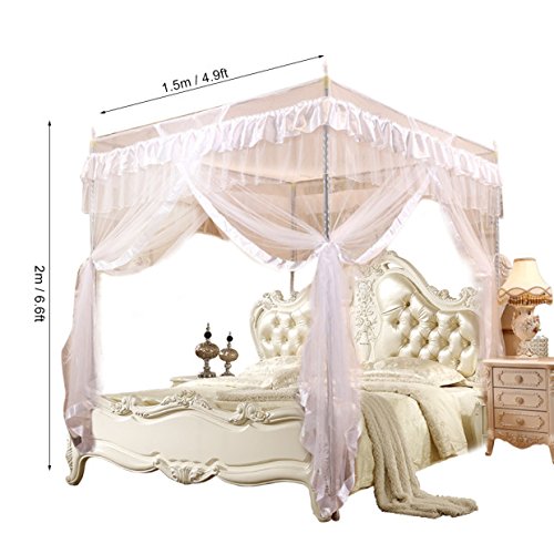 Zanzariera Copriletto Sui Angoli Montante Biancheria Da Letto/ L'Arredamento Carino In Stile Principessa Camera Senza Supporto( Colore: Bianca, dimensione: 1.5m*2m )