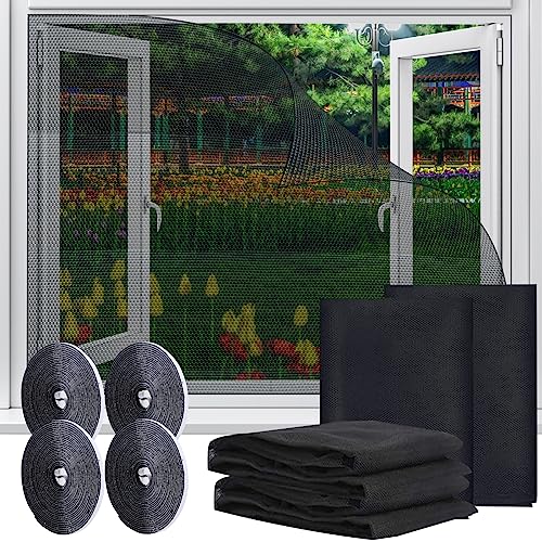 Zanzariera Per Finestra, 4 Pezzi Zanzariera Universale Finestra 130cm x 150cm Zanzariera Finestra con 6 Nastro Autoadesivo Zanzariera Autoadesiva Fai da Te Per Finestre per Insetti e Mosche (Nero)