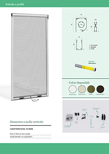 Resistente lunga durata-Zanzariere molto robuste in alluminio-profondità del Cassonetto/Rullo 4.2 cm. I profili guida con spazzolino che garantisce la stabilità e la facilita di reinserire la rete all'interno delle guide.