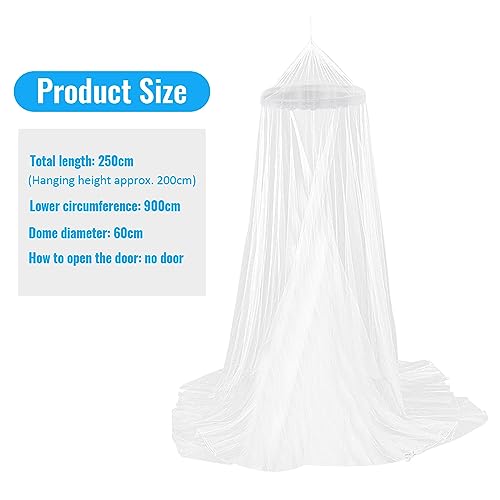 Zanzariera Letto Matrimoniale 250x900x60cm Grand Zanzariera Baldacchino Zanzariera Universale a Cupola con Supporto dell'anello del filo d'acciaio Pieghevole Zanzariera per Anti Zanzara Insetti,Bianco