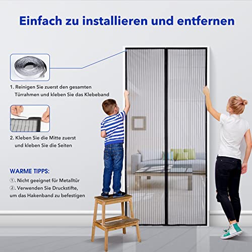 IDEALE PER ANIMALI E BAMBINI: Il Nostro Zanzariere Porte Ha 26 Potenti Linee Magnetiche Costruite Vicino Al Centro Con Magneti Per Garantire La Migliore Chiusura, Consentendo A Cani E Bambini Di Entrare E Uscire Facilmente. La Giacca A Vento Extra Nella Parte Inferiore Impedisce Alla Tenda Di Soffiare Nel Vento (Srotolare La Giacca A Vento Durante Il Passaggio).