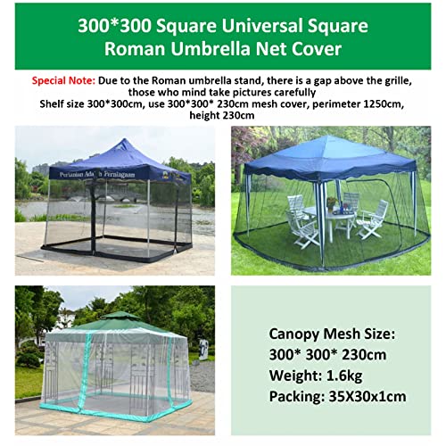 Zanzariera per ombrellone da patio, zanzariera quadrata da 3 x 3 x 2.3 meters, con corda regolabile e doppia porta con cerniera, Gazebo Per Zanzariera Ombrelloni Da Este(Size:300x300x230cm,Color:Nero)