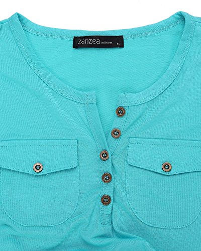 ZANZEA Donne Casual Ufficio Elegante Cotone Camicetta Abbottonata V-collo Maniche Lunghe azzurro IT 38