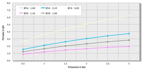 I fori d'uscita del gocciolatore permettono una veloce e facile installazione senza la necessità di verificare la posizione del punto di emissione, assicurando lo svuotamento delle tubazioni alla fine del ciclo irriguo