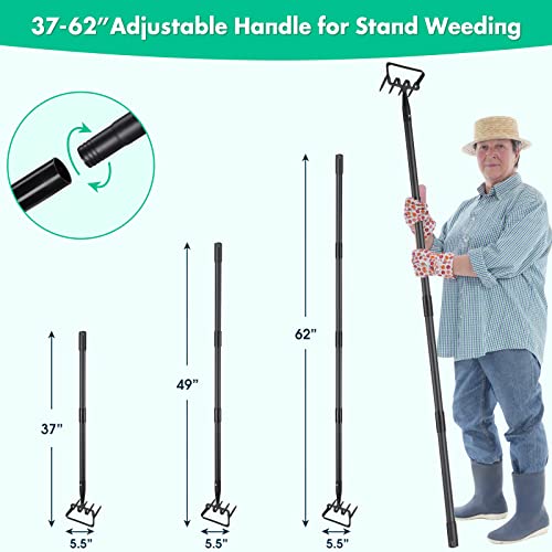 Manico regolabile da 63": Regola la lunghezza del manico di questa zappa e rastrello da giardino da 37 a 63 pollici aggiungendo o togliendo le prolunghe. Il diametro dell'asta di 1 1/8" la rende sufficientemente robusta per i lavori di giardinaggio più impegnativi. Per bambini e adulti, per erbacce difficili da raggiungere