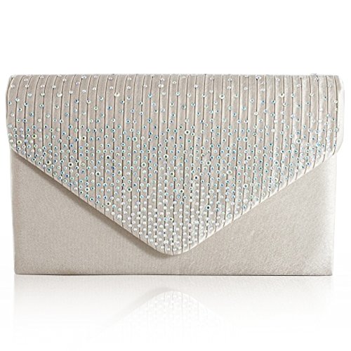 Zarla Borsetta da donna, pochette da sera a forma di busta per lettera, effetto satinato con strass, adatta per matrimoni, balli, feste