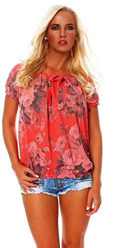 ZARMEXX Donna Camicia Guscio Motivo Floreale Carmen Camicetta, Viscosa a Maniche Corte * Big Rosa * (Salmone, 40-44)