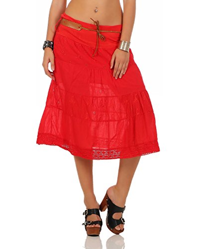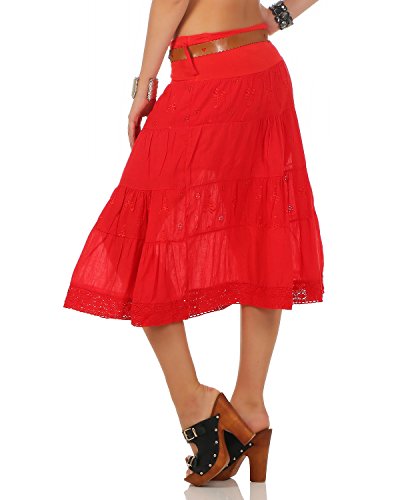 ZARMEXX Gonna in cotone da donna Gonna estiva Gonna decorata Lunghezza al ginocchio con cintura in cotone (rosso, 40-46)