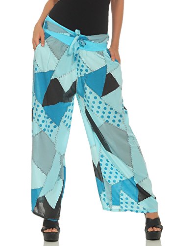 ZARMEXX Pantalone Svasato da Donna Pantalone Estivo Palazzo Pantalone Marlene Stampa Patchwork Azzurro Taglia Unica (40-44)
