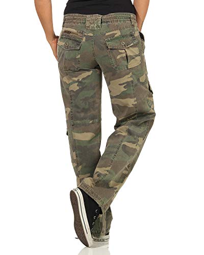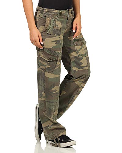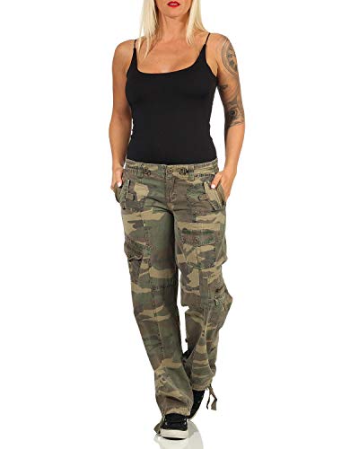 ZARMEXX - Pantaloni stile cargo da donna, mimetici, militari, adatti per il tempo libero, look vintage, per attività all'aria aperta, Mod.06-67 verde, L
