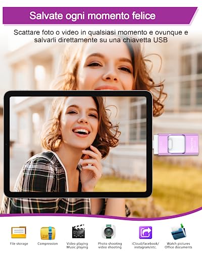 Backup ad alta velocità e con un clic: le chiavette USB 3.0 offrono fino a 80 MB/s di lettura e 40 MB/s di scrittura, e foto, video e documenti possono essere salvati con un clic sulla chiavetta USB. Libera rapidamente lo spazio di archiviazione sul tuo dispositivo, risparmiando tempo. ZARMST USB Stick lightning, è così facile creare più spazio di archiviazione.