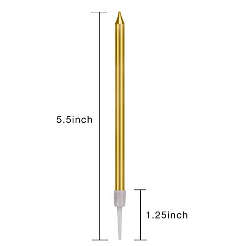 ZARRS Candele Torta di Compleanno,24 Pezzi Metallico Candeline Torta Festa Lungo Sottile Candele con Supporti per Compleanno Matrimonio Decorazioni Baby Shower Partito Torta Oro