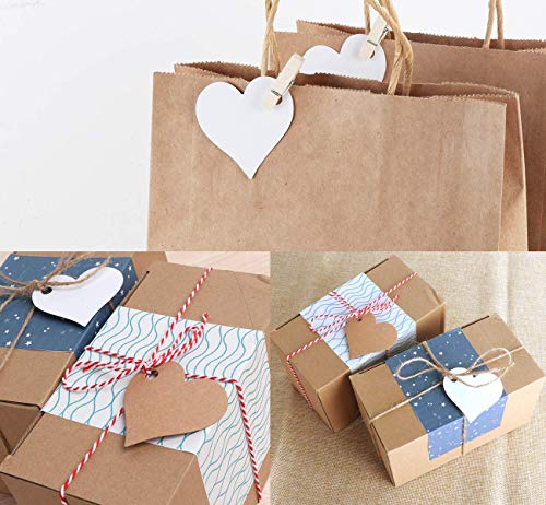 ZARRS Etichette di Carta Cuore,200 Pack Regali Cartellini Targhette Carta Kraft Etichette per Matrimonio San Valentino Decorazioni per Feste Natale Bomboniere con 20 Metri Iuta Spago Bianca 6 * 5.5CM