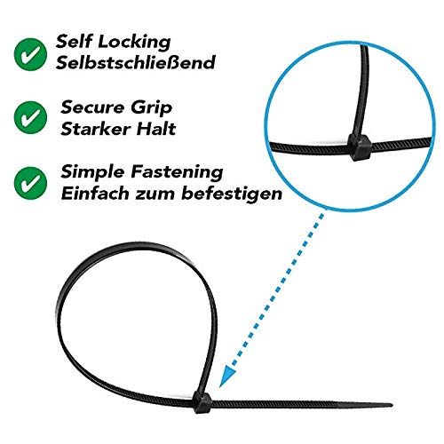 ZARRS Fascette Stringicavo Nylon,100 Pack Nero Fascette per Cablaggio Pesanti Nere Chiusura autobloccante per officine per Garage Home Office 200mm x 2.5mm