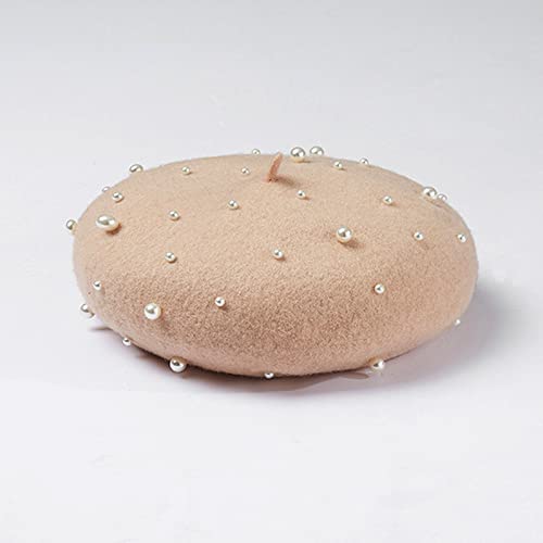 ZARSIO Berretto da donna con perle elegante dolce artista francese stile berretto berretto, Cammello, Taglia unica