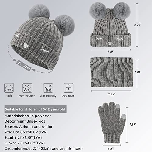 ZASFOU Bambini Inverno Caldo Knit Beanie Cappelli Scaldacollo Sciarpa e Guanti Touchscreen Set con Pompon Foderato in Pile per Ragazzi Ragazze