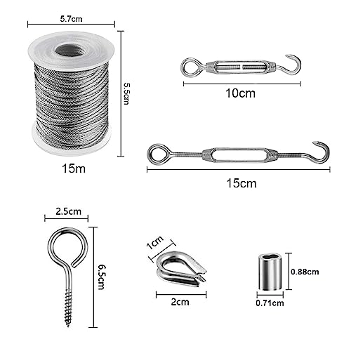Zasiene Corda Appesa Kit Set da 19 Pezzi Acciaio Inossidabile Corda Appesa Kit Tenditore Acciaio Cavo Acciaio Rivestito Corda Stendibiancheria Suspension Kit per Tendere Corde e Cavi da Esterno