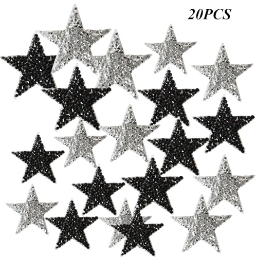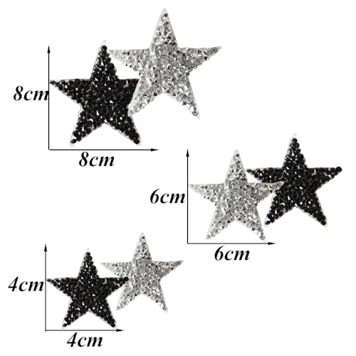 Set di toppe stelle cristallo: Contiene 20 pezzi di toppe stelle cristallo, tra cui 4 toppe a stella bianche e nere da stirare con dimensioni di circa 4*4cm, 6*6cm e 2 toppe a stella a cinque punte bianche e nere da stirare con dimensioni di 8*8cm, sufficienti a soddisfare le vostre esigenze di utilizzo quotidiano.