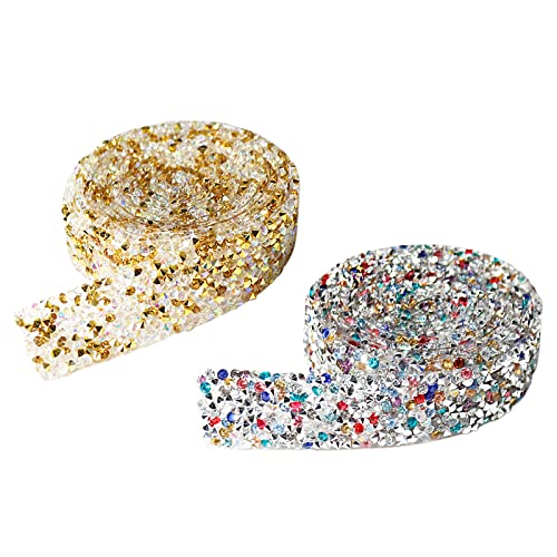 Zasjon Nastro di strass di cristallo, 2 Rotoli Passamaneria Decorativa Strass Termoadesivi, per Artigianato Fai da Te Decorazione di Cerimonia Torte Nuziale Rifornimenti del Partito