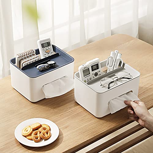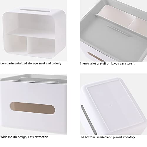 Zasjon Porta Fazzoletti, Scatola porta fazzoletti Rettangolare con telecomando portaoggetti, Scatola tovaglioli in Plastica per cucina bagno camera da letto (Grigio)